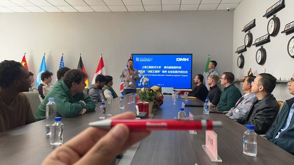 2025年11月14日下午,上海工程技术大学与德马赫智能科技公司产教融合“卓越工程师”培养项目企业实践开班仪式在苏州伊徕尔特机械有限公司正式拉开帷幕。来自印度尼西亚、摩洛哥、巴西、塞内加尔、泰国、孟加拉等6个国家的10名国际学生,涵盖纺织工程、人工智能及国际经济与贸易专业,应邀前往,进行了一场深度工业实践与文化碰撞。