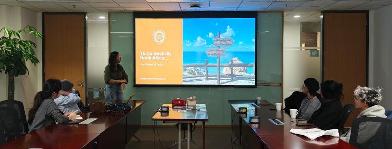 参访期间,TE公司向学生们系统介绍了其全球业务布局、核心技术产品及可持续发展战略,并重点分享了在北非地区特别是摩洛哥的业务发展现状与未来规划。TE在摩洛哥丹吉尔设有六大制造与物流中心,涵盖汽车、工业自动化、数据通信等多个领域,为当地提供了大量工程技术岗位。